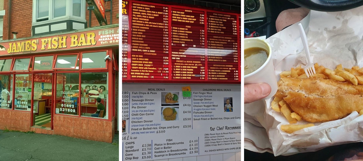 Enjoy delicious fish and chips at James' Fish Bar in Colwyn Bay! Our affordable takeaway offers a mouthwatering selection including Chinese and curry dishes, chicken balls, and rich gravy. Perfect for a satisfying dinner at great value. Visit us at 117 Abergele Rd or call +44 1492 531808 for tasty delights!
